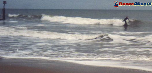 Steep banks give really nice clean wedgy waves with an offshore wind, but it gets very messy onshore though. With a bit more swell this beach would be ace on a shortboard. Good fun though even on a small wave.