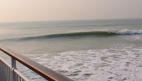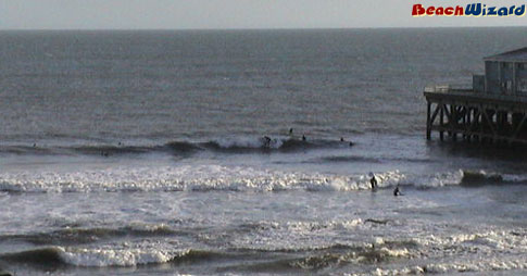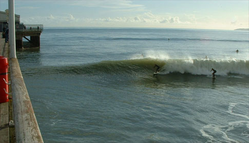 Can offer some surprisingly good waves, but gets blown out with fierce cross-winds that make it very hard to stay on the peak. Watch out for fishing lines off the pier!
