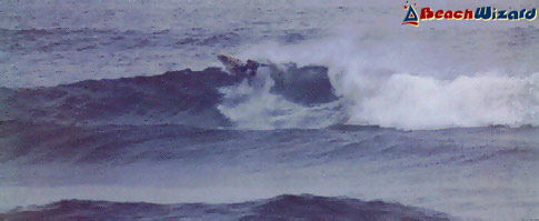 We called this sewerpipe, it is located west of the rivermouth at Thurso. There is a pipe that runs on the beach here. Real nice rollercoaster right, runs forever and holds good size.