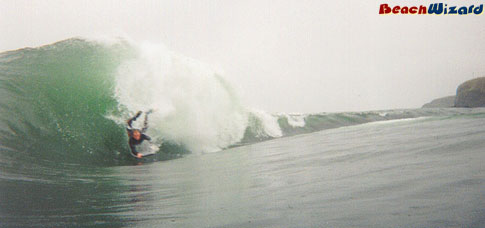Black rocks is good but halfway between Portrush and Portstewart there is an even better hollow right hander. Across the road from Juniper hill caravan park is a reef locally known as 'The Slab', it is fast and has a heavy peak and is very shallow. Only for the very experinced, more of a spongers wave.