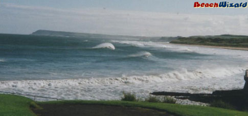 the picture below shows the WEST strand in Portrush. It is a more mellow wave than the east strand but works much more often. There is reef beside the cliff which holds 6-8' and is hollow but doesn't work that often and is shallow.