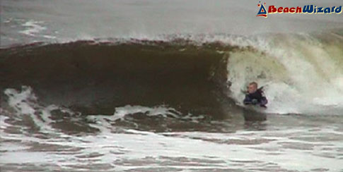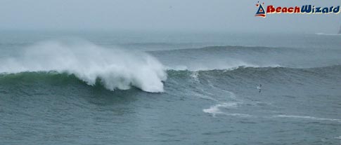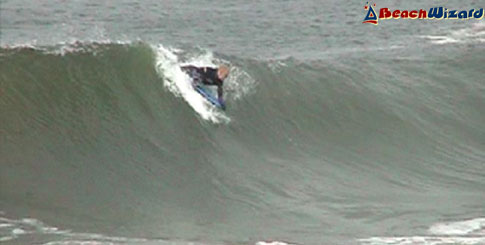 This will pickup more swell than anywhere else. It is usually onshore as it is west facing and gets some big barrels. Left of beach there is a short right hander at the rivermouth. The centre of beach has both rights and lefts. It can get VERY big in winter.