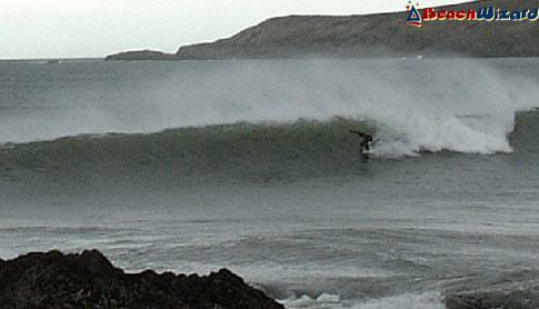 Great little beach/break with lefts and rights off the rocks at the harbour on a good day. It has good shelter from anything but full onshore. Great little barrels when classic conditions apply. As good as any Cornish beach break without the crowds!