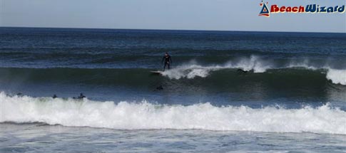 Most consistent. Faces NNE, point/reef to the east, beach to the west. Long slow rides. Crowded on weekends and evenings in summer. Early mornings guaranteed waves to yourself.