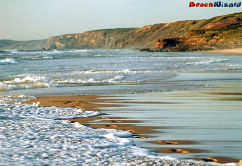 Here you can have a peak to yourself. This place goes on for miles and if you get too tired from the surf, theres a nudist bit down the far end of the beach! As for surf, theres a left peak off the cliff that can reel and a little further down a fairly consistant A frame. As there's very little wind in the Algarve, even in the winter, any swell will usually be clean!