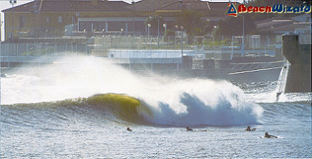 This place needs a BIG swell. When the Linha (the beaches between Cascais and Carcavelos) are too big to surf (3m+), this is pretty much the only place that will hold the swell. If you are confident, you can jump into the peak from the rocks in front of the castle, but make sure you time it right or you'll be washed back up onto them. It's a heavy, fast and often hollow wave which will be populated by the best surfers in Portugal, so make sure you let them have their waves. Also watch out for the recently-constructed groyne, which can actually interfere with the later sections of the smaller waves. Bascially, GO BIG and don't stop. This can be one of the best waves in Portugal when it is on.