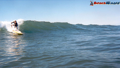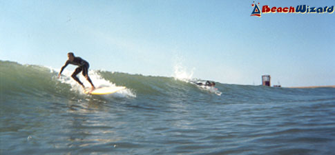 This beach is good when the sea is big but the water is not very clean and is often crowded here. Although the beach has good rights I have surfed nice waves there.