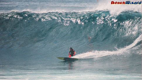 The volcanic reef itself can hold enormous swells and has been ridden well and truly upto 25ft. It is sometimes broken up into 2 or 3 sections depending on swell and provides very powerful rides. This spot is not known for its tubes, it does have some but its not guaranteed.