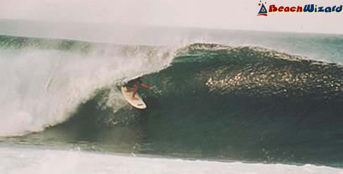 I saw barreling 8-10 footers rolling in off the reef. I went out with some mates and had a gnarly barrel session. Great but for experienced surfers only. Rocks!!!