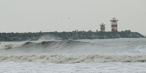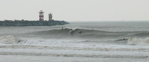 I went to Holland back in '98 and the north side of that jetty just south of the Scheveningen pier was spining off waist high sets. Nice lines for a longboard or mabye even a fish if it were a little bigger. In my opinion that jetty produces the best wave in Holland. The sand build up there is just right for it to considered a decent surf spot.