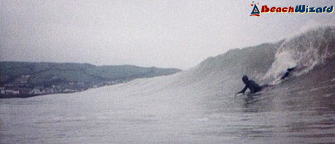 Works well on a big south westerly in the southern corner, breaking left over a small reef then peeling left over sand and rocks. Beach break style further up the beach, with sea defences. I got it in early spring when chest to head high. I found a really good vibe in the water amongst the locals, contrary to what I had been told!