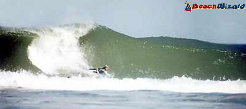 I surfed down near the lighthouse last summer, a few local kids gave a bit of attitude but apart from that it's a half decent break with plenty of space. Very dangerous rips if you take the kids, but really well patrolled by the lifeguards. Will be back this year for sure.