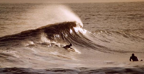 A nice hollow wedge, good left at low tide near the cliff with swell bouncing off the cliffs all through the tide causing perfect hollow A frame peaks in a northwesterly wind. Some cranky locals!