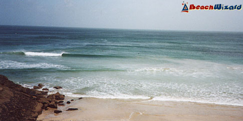 A wedge from mid to high tide and a normal beachbreak at low. Only works on a massive swell and gets heavy crowds. Entry and exit from rocks at high tide.