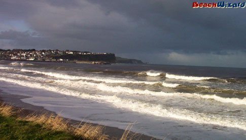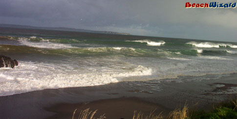 Beach is very seldom occupied. Takes a large swell for it to work well. Usually alot smaller than the beaches to the east, but if they're too big Ballycastle is worth looking at. The beach itself has a few holes and gets deep very quickly when wading out in the first few steps.